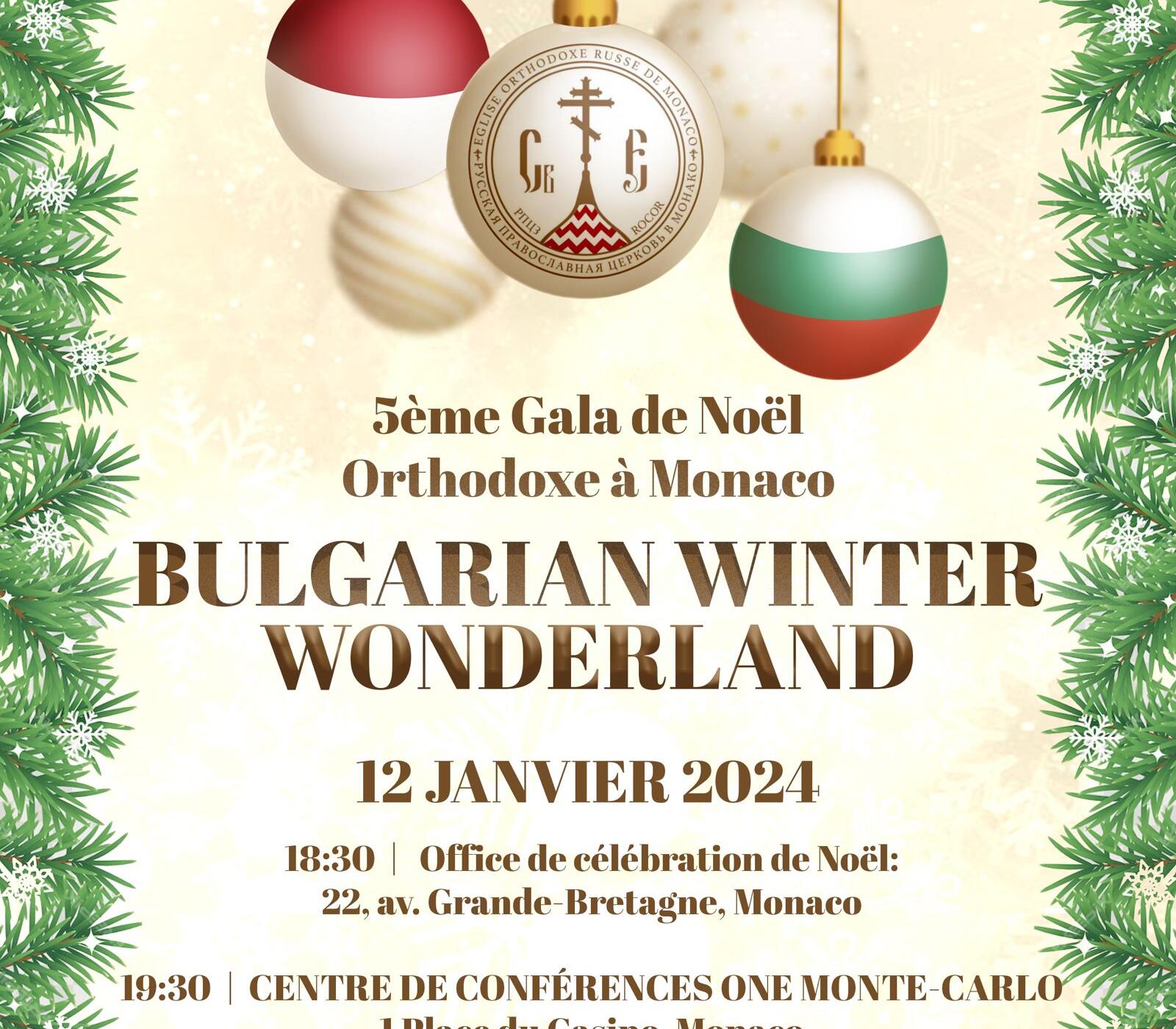 "Bulgarian Winter Wonderland", célébrant la République bulgare à Monte-Carlo. Avec la bénédiction de Sa Grâce Irenei, évêque de Londres et d'Europe occidentale. Dîner gastronomique à plusieurs plats préparé par le célèbre chef bulgare Andre Tokev. Grande vente aux enchères par Sotheby's Monaco &