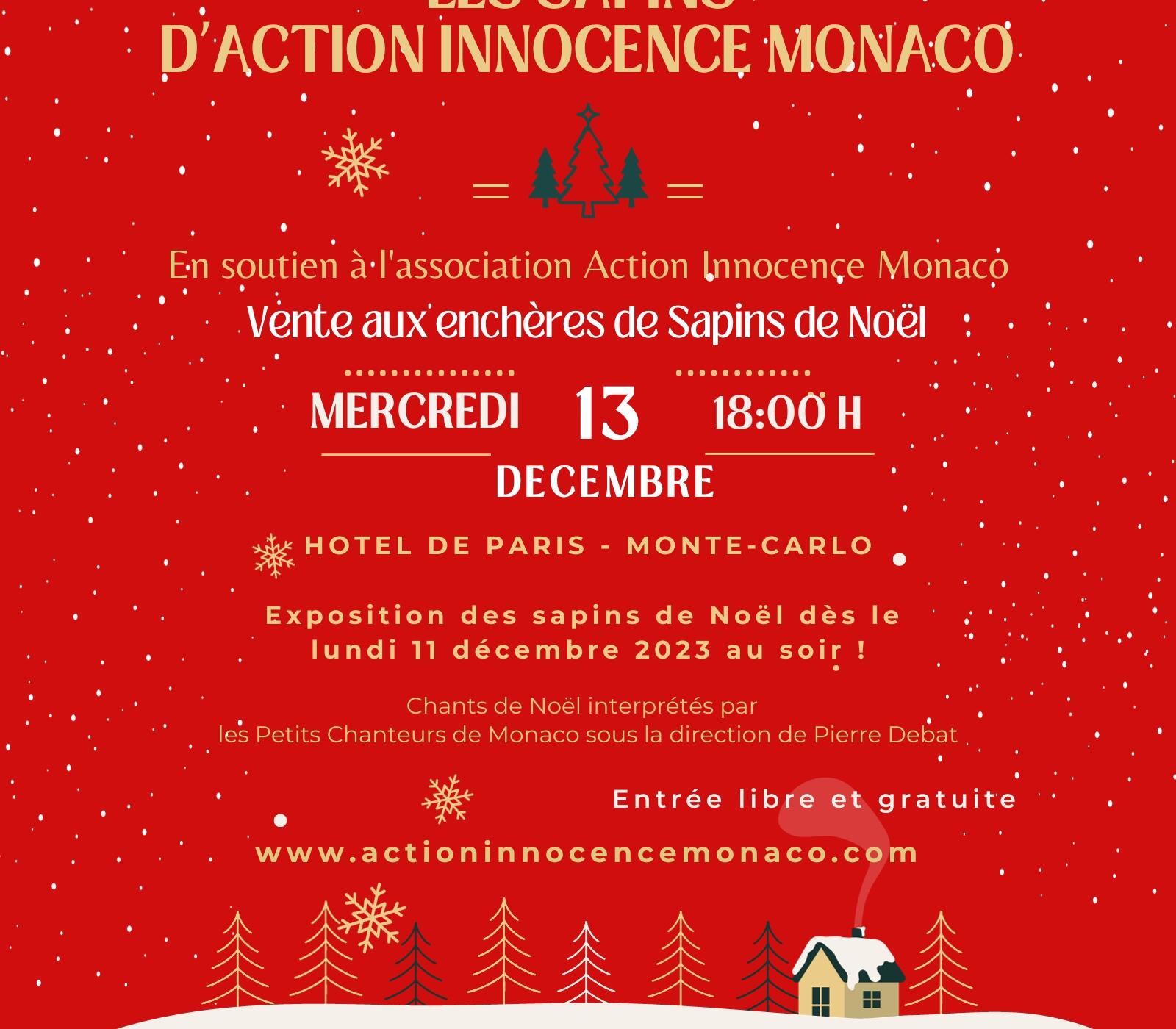 Canti di Natale interpretati dai Piccoli Cantori di Monaco ,diretti da Pierre Debat. Asta di alberi di Natale a sostegno di Action Innocence Monaco. Gli alberi di Natale saranno esposti dalla sera di lunedì 11 dicembre 2023.