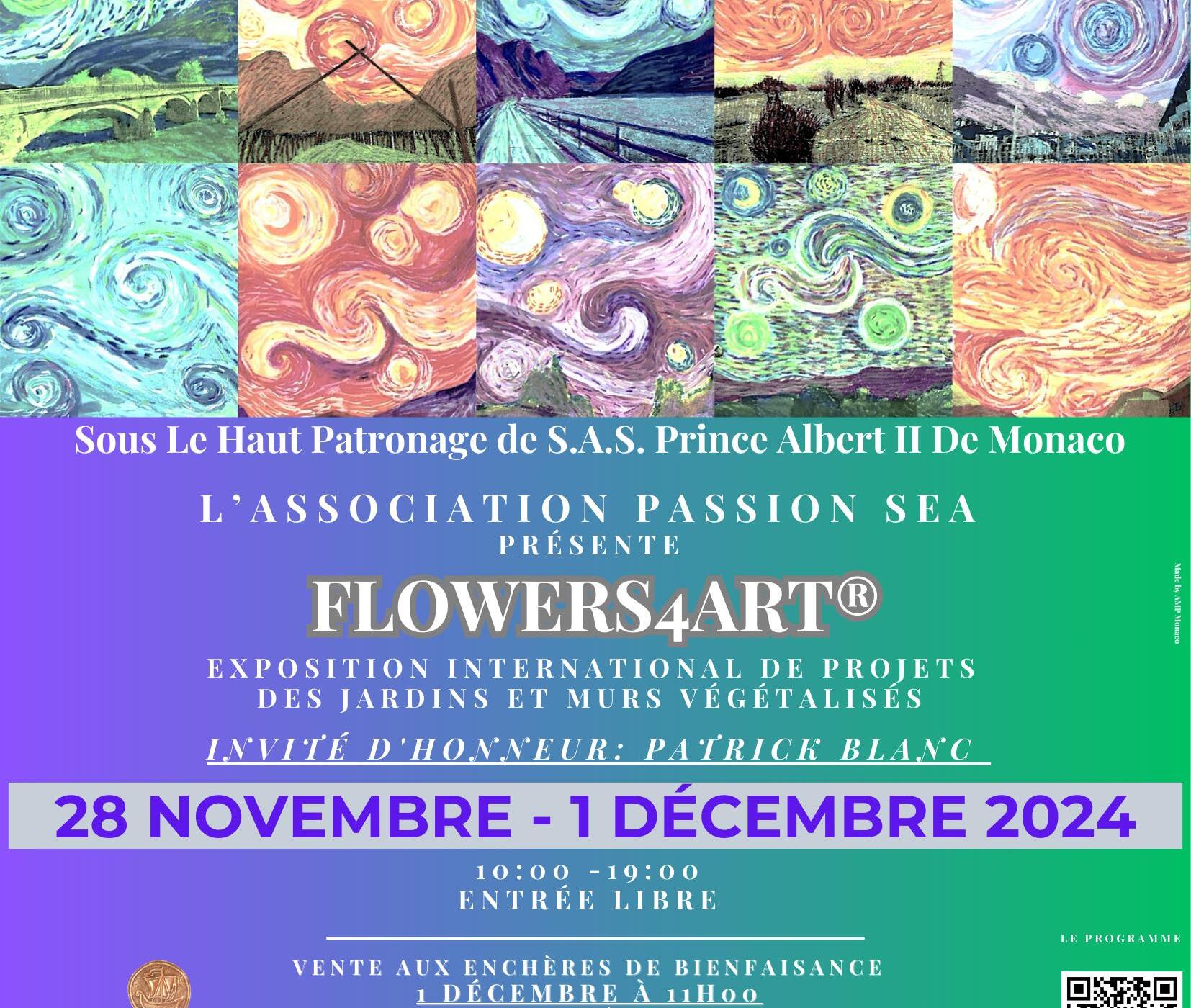 Flowers4art® is an exhibition held under the High Patronage of H.S.H. Prince Albert II of Monaco, with Patrick Blanc, biologist, botanist, and scientist at the research institute CNRS, who invented the living green wall in 1986. Flowers4art® will explore the concept of hydroponic walls in the world's biggest cities, and their potential benefits for our environment and health. Over four days, a number of startups, landscapers and garden designers will display their living walls and columns, inspired by the movements and vibrant colours found in the works of celebrated artist Vincent Van Gogh.