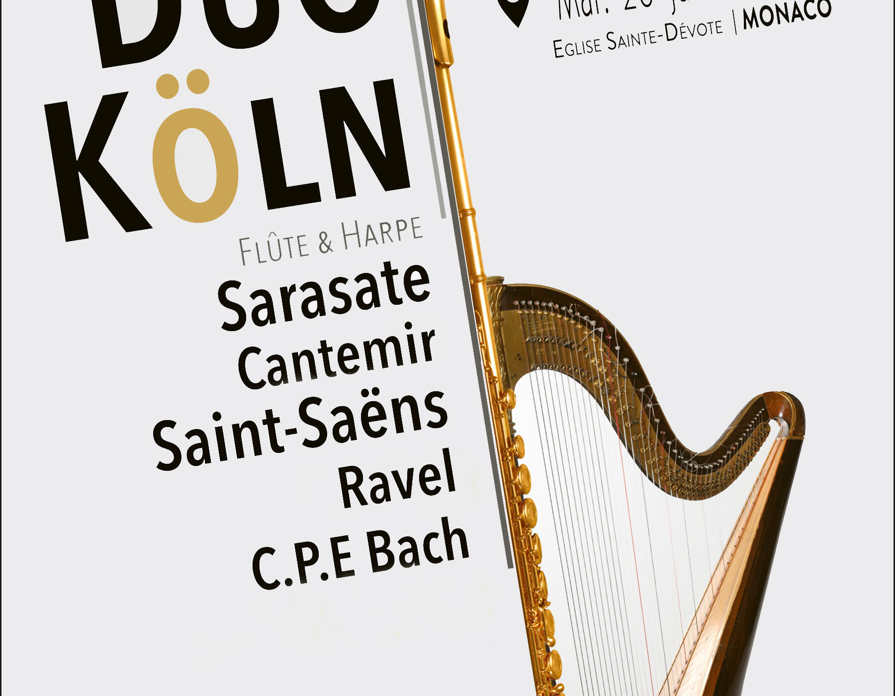 Concerto del Duetto Köln con Issam Garfi, flauto e Johana Solbes, arpa, a sostegno dell'Associazione Musicâme France. In programma: Sarasate, Cantemir, Saint-Saëns, C.P.E. Bach e Ravel